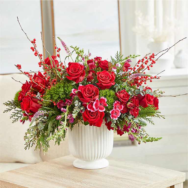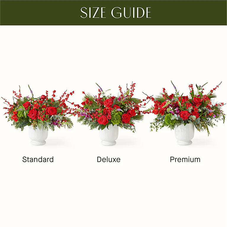Make a statement this holiday season with the Big Red Bow Bouquet, an artistic expression of red roses, snapdragon, and berries to wow guests as a centerpiece or spread some cheer to friends and family.