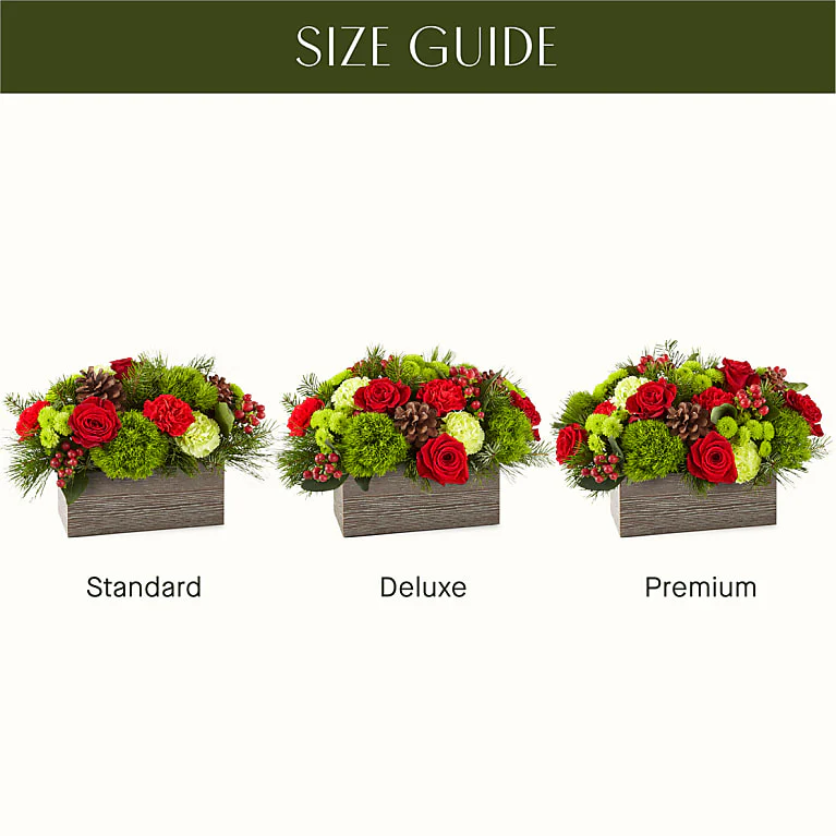 - The Deluxe Bouquet is approximately 11″H x 15″W.