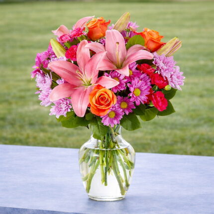 A thoughtfully curated blend of fresh roses, cheerful daisies, and elegant lilies comes together to create a truly distinctive bouquet. Carefully selected for beauty and balance, this floral arrangement makes a meaningful and memorable gift for any occasion, from heartfelt celebrations to simple moments of appreciation.