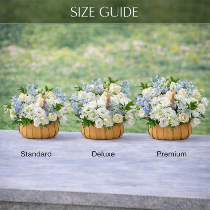 Fresh blue and white blooms come together in this thoughtfully designed basket to express your deepest sympathy and care. Featuring elegant roses, lisianthus, and delphinium, each flower is carefully arranged by our talented designers to convey comfort, love, and heartfelt remembrance. This graceful basket offers a meaningful way to honor the life of a loved one while sharing peace and support during a difficult time.