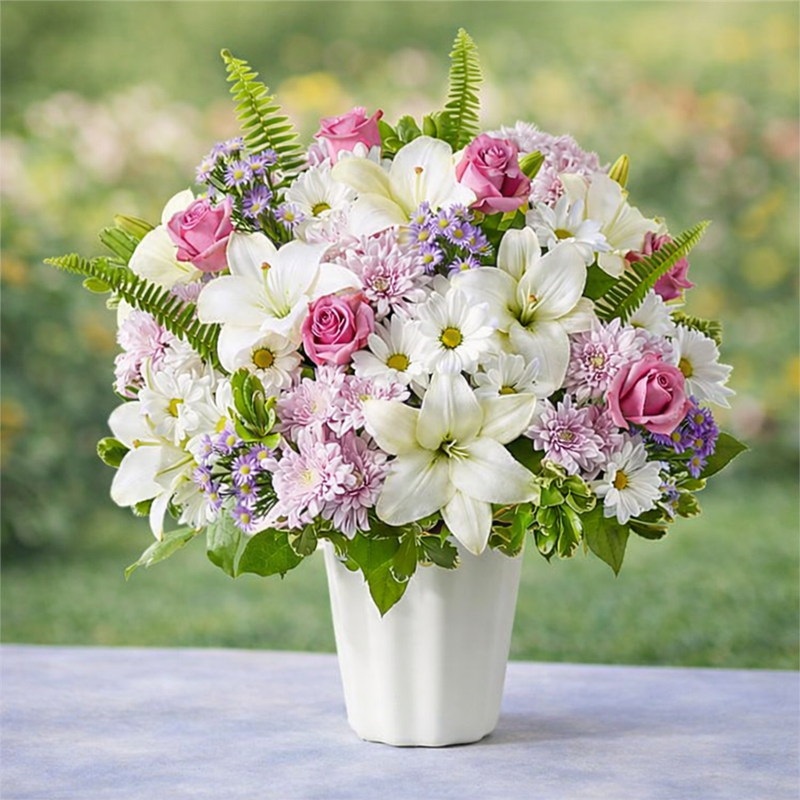 These stunning blooming plants are beautifully arranged in a romantic, eye-catching design that’s perfect for any occasion. Overflowing with vibrant white, pink, and red blooms, this lush garden creates a heartfelt expression of love and appreciation. Thoughtfully designed to feel both elegant and warm, it’s the perfect gift to remind someone just how special they are, whether for a celebration or a meaningful everyday moment.